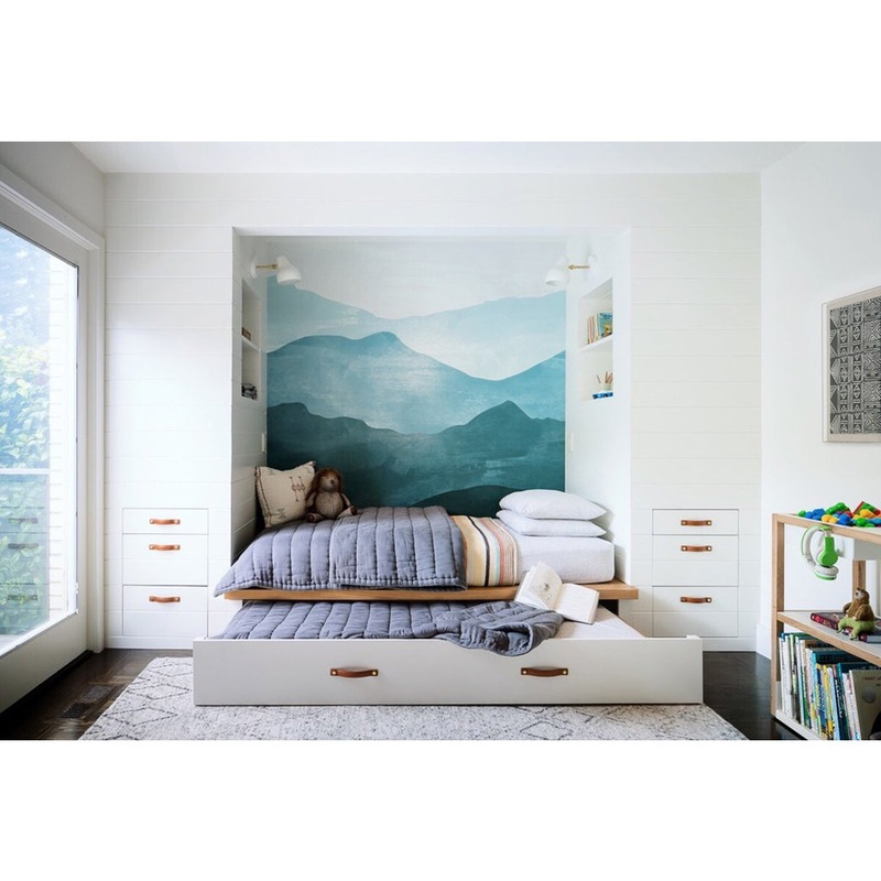 Watercolor Mountain Mural Traditional Wallpaper Emerald Green